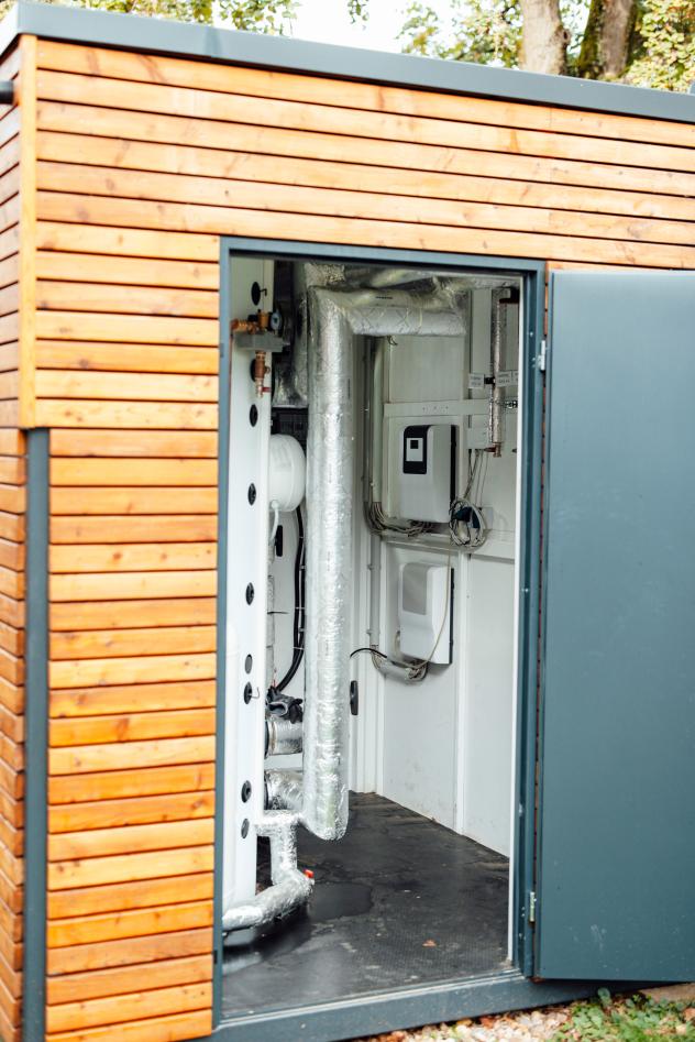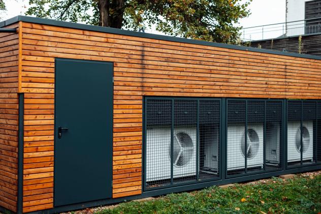 Doch fällt die Anlage vor dem Wohngebäude nicht auf? Holger Höhl relativiert diese Sichtweise: „Sechs einzelne Wärmepumpen würden vor einem Mehrfamilienhaus noch weitaus mehr ins Auge fallen.“ Außerdem ist die Heizzentrale so ansprechend wie möglich gestaltet. Für eine angenehme Optik ist die Technik der Container-Lösung hinter Holzlamellen verborgen. Das Dach des Containers ist begrünt. „Wenn die Bewohner aus ihrer Wohnung schauen, ist es eher so, als würden sie auf eine Gartenlaube blicken“, erläutert der Experte.